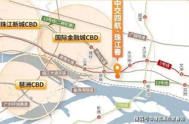 项目毗邻的鱼珠站、大沙地站双地铁站,目前就能通过地铁5号线直达金融城、珠江新城,实现丝滑通勤,未来13号线二期开通后,也通过鱼珠站直抵珠江新城。