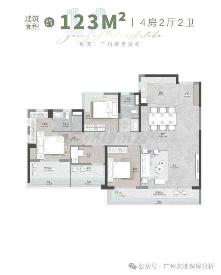 项目配建有4000方的商业,2000方的肉菜市场项目北面3公里有个优托邦,更多大型商业的话需要驱车去珠江新城,那边有太古汇、天环、K11等商圈非常成熟。