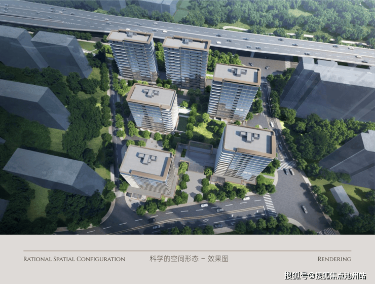 项目总建面约4.88万㎡,占地约1.45万㎡,规划6幢11-14层小高层。适中的规模与2.2的容积率,在保障居住舒适度的同时,实现与城市的和谐共生。东侧车行入口与南向人行主入口的分流设计,将日常动线转化为具有仪式感的归家旅程。