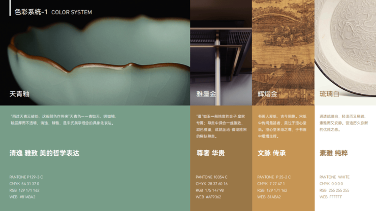 宋之美学,简约自然、清逸高雅,一山一水,一草一木,皆是诗意。艾米标识设计团队深谙此道,在标志形态落定后,团队遵循金地风华系“意致东方,情致现代”的产品理念,演化标志宋瓷汝窑形态,冰裂纹纹样,辅以宋式门窗书画点缀,让现代艺术照见宋风生活,满足标识功能的同时,演绎项目宁静、诗意及和谐特性。