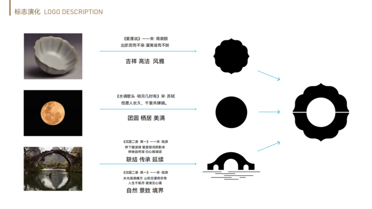 为助力金地风华系品牌升维,达成“可赏、可游”的标志概念迭代。艾米品牌设计团队深度挖掘宋式文化精髓。取宋瓷之形体,汇入佩玉、平安扣、盈月、湖水,桥梁等视觉焦点,成就东方美学的世界回响。
