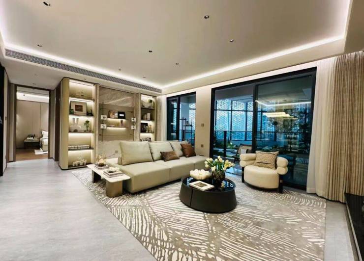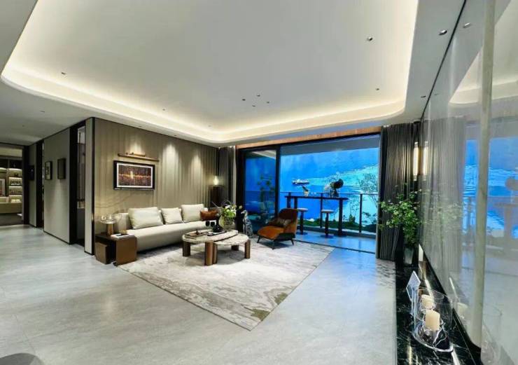 样板间展示的是打了一个房间并入客厅,加上6米的宽阳台和客厨一体化,显得整个客餐厅空间很大,采光面十足。