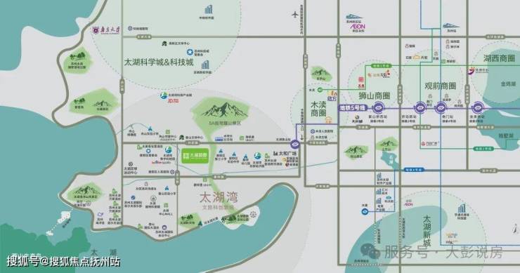 项目周边有不可复制的环境资源,苏州有两个国家级度假区,一个是阳澄湖国家旅游度假区,另一个就是我们太湖国家旅游度假区,太湖湾区,北靠穹窿山(5A级风景区),南临太湖,整体环境宜居,生态宜人;