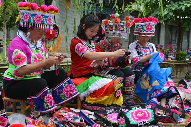 此外,制作工艺精良、独具匠心的彝族传统服饰也让往来游客沉迷。刺绣、剪裁、装饰、缝制,饱含民族风情,色彩绮丽又不失雅致。每件传统服饰都由当地村落绣娘手工绣制,相对于机器走线的规整严密,手工刺绣更为随心恣意、自然柔和。随性的、不规则的、如呼吸般起伏变化的色彩,以及神秘的纹样图案,构成令人动人动容的“高级定制”。