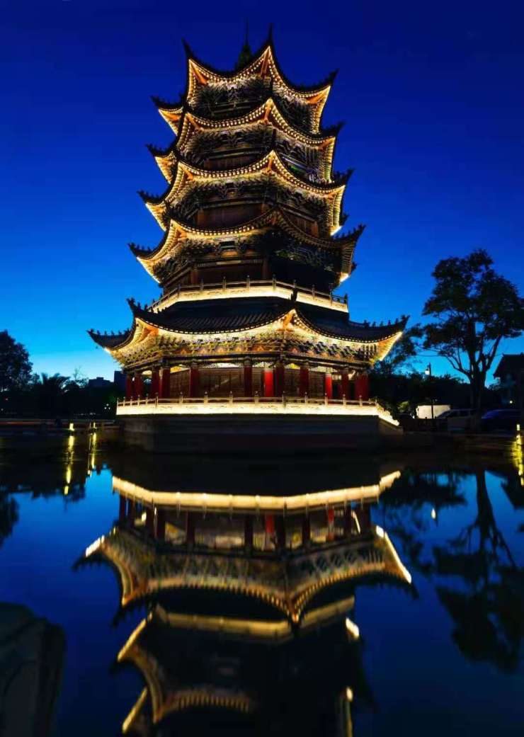 在桃花溪西端高耸的望江楼,是一个塔状八角攒尖顶式的五层建筑。据考证,宋代大理国国相高量成曾在古德江城内建有“望江楼”。彝人古镇建设之初,亦重建该地标,并在楼内展示各种风格的字画条幅,将其打造成彝州文化艺术馆和楚雄文人荟萃之所在。登楼远眺,可一览古镇风貌及雄楚山光水色。