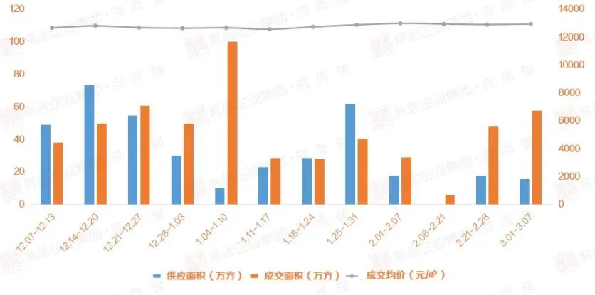 克而瑞显示,3月排名前列周,住宅成交57.87万方,环比上涨19.84%。光看数字,可能没什么概念。从柱状图可以看出,市场呈现“供小于求”的局面。