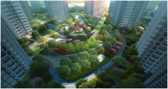 社区大面积的公共景观空间,分配给儿童游乐区、健身设施、邻里社交场等。