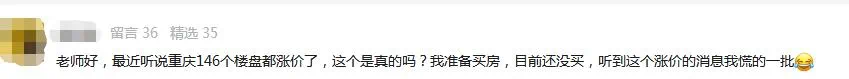 加上最近146个楼盘涨价的消息,一位没买房的粉丝就说了:慌得很。
