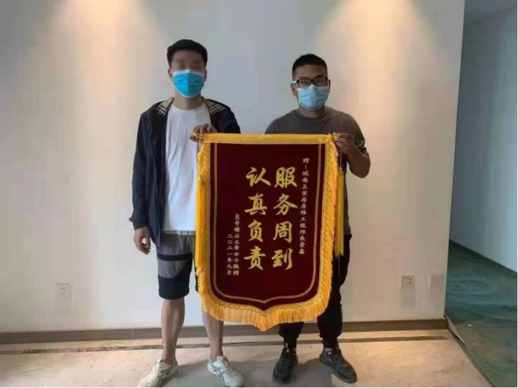 业主为表达谢意特赠送一面锦旗,“心系业主,真情服务”字里行间体现房修工程师从细节的用心,到服务品质上无处不渗透出对业主的关怀。