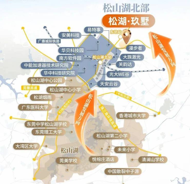 论交通,规划中的东莞R3线东坑站,未来一站到松山湖北站、三站即到南城CBD;论教育,东坑中学、东坑小学(在建)已归松山湖教育集团管理,教育与松山湖同步;论配套,两首歌的时间可直达松山湖万象汇,共享松山湖精华配套。