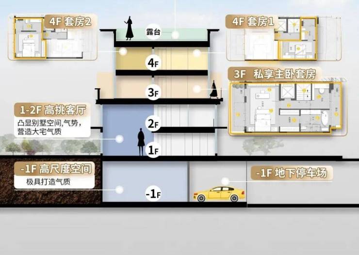 另外,松湖·玖墅还创造性地将2层变4层,达到了高达约250%的实用率。