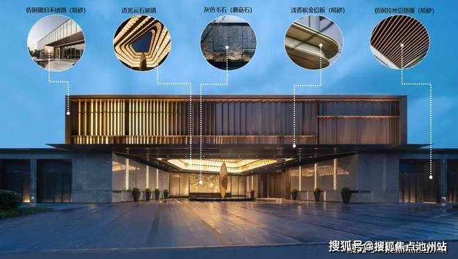 外立面采用更通透、明亮的浅灰色玻璃和香槟色木纹铝板,通过细节让建筑在色泽上更温暖近人;屋面以L型折角“飞檐”封顶,中段以舒朗的水平向线条为主,裙房用海蓝宝石材的重量感加以“稳定”基座。