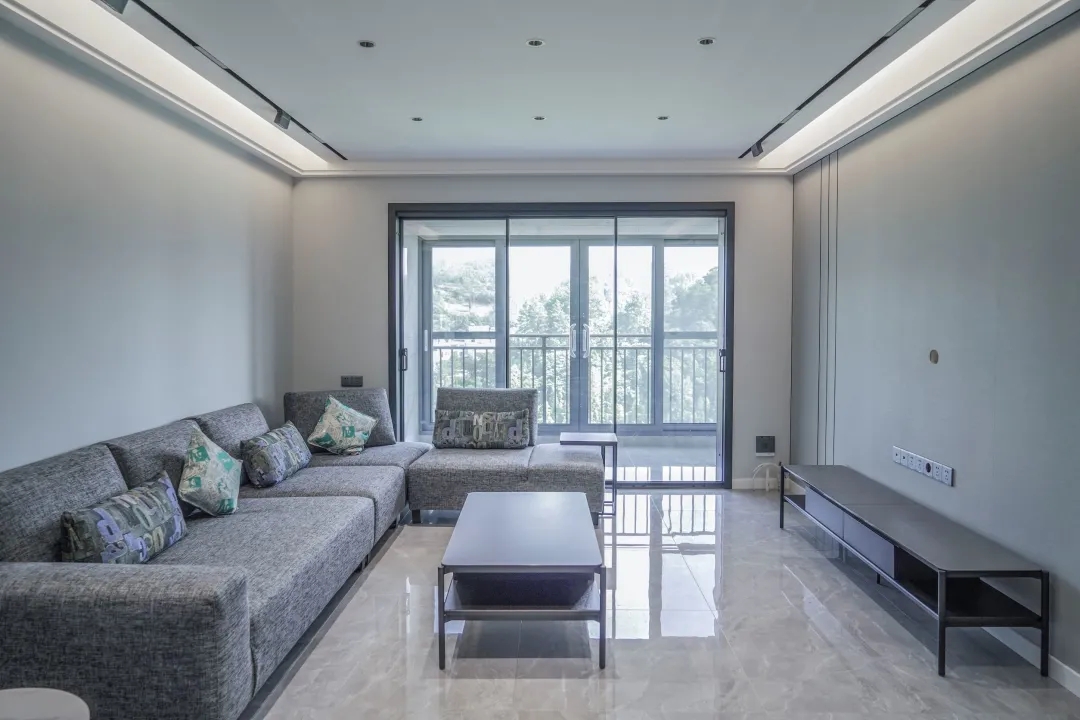 放眼望去,阳台的三轨带纱尊享推拉门一目了然,设计简约自然,良好的采光、通风条件,通透的大玻璃使高楼层美景一览无余,一切恰到好处。