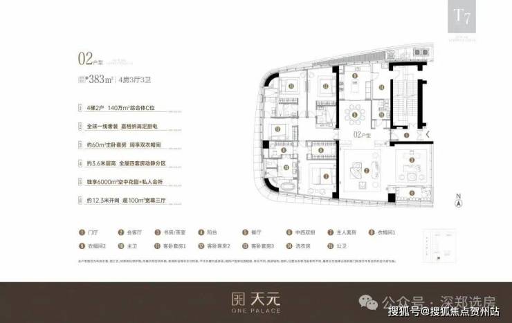 【T7-01户型鉴赏】约393㎡四房三厅六卫
