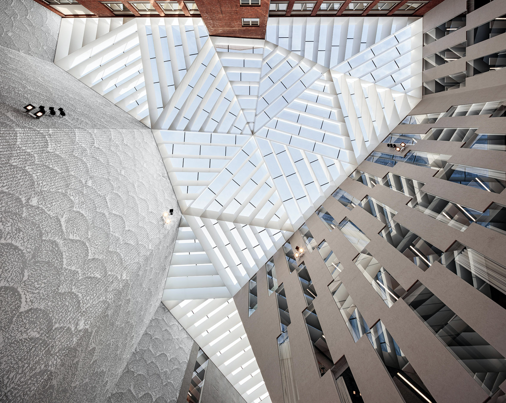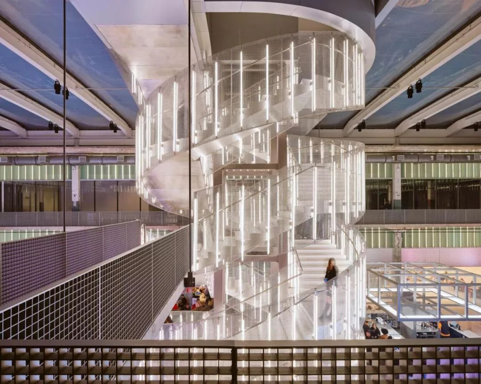 位于荷兰鹿特丹的Depot是世界上排名前列座向公众开放的艺术仓库。其中庭的设计作为建筑内部最引人入胜的空间,让人们进入建筑内部的排名前列时间便能直观地看到艺术品。并通过纵横交错的楼梯与存储空间的通透开窗,参观者能够在中庭360°的范围内观看博物馆的藏品,站在中庭即能享受全景式的艺术盛宴,让中庭空间兼具美观性与实用性。