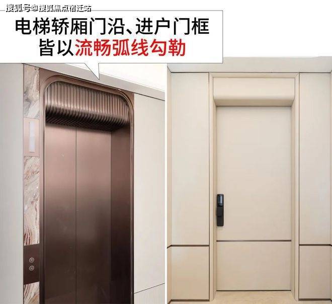 电梯轿厢门沿、进户门框皆以流畅弧线勾勒,为业主日常等电梯和归家增添几分优雅。