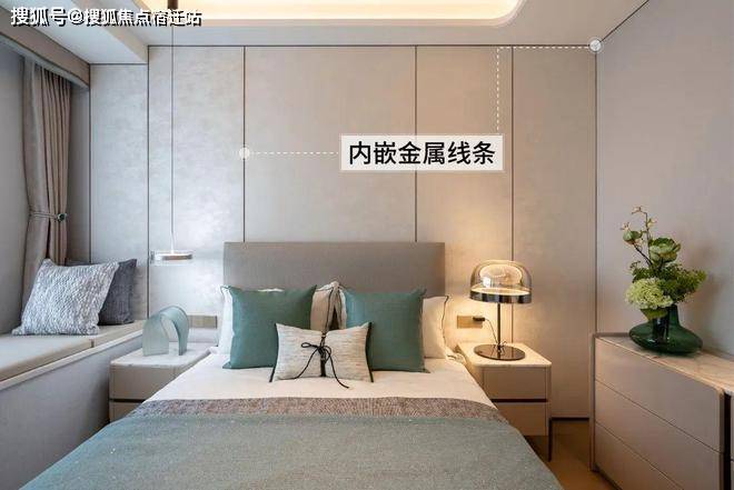 室内墙面及转角处内嵌金属线条。这些线条不仅是装饰,更在视觉上起到了延伸与过渡效果,让空间更具层次。
