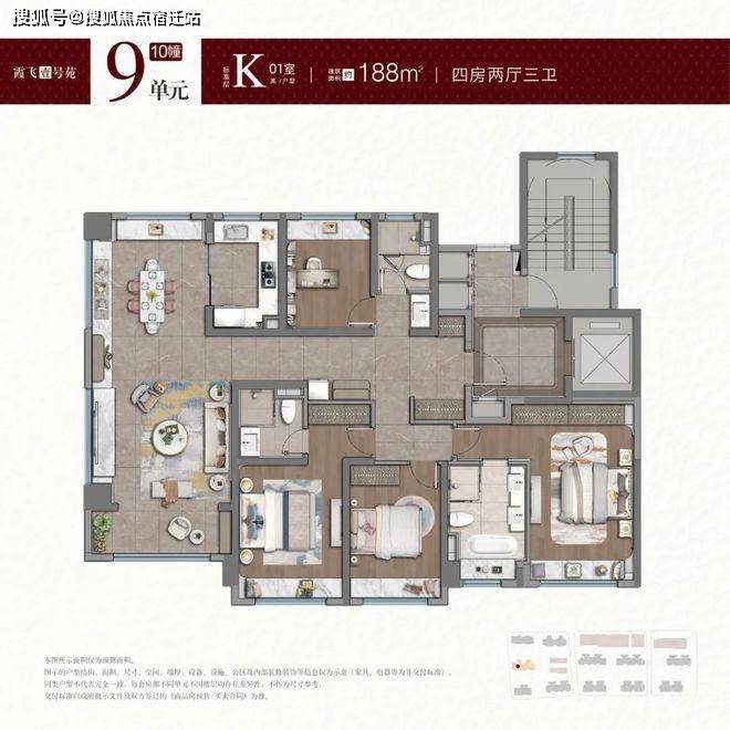 户型方面,项目将推出建面约98-122㎡3房及141-188㎡4房。