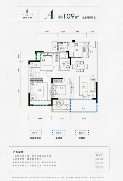 A1 建面约109㎡三室两厅两卫