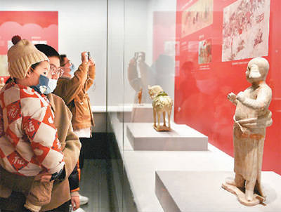 游客在江苏常州博物馆赏文物、看展览,感受历史文化的魅力,享受假日美好生活。史 康摄(人民图片)