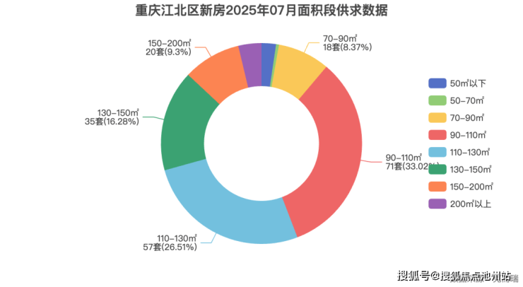 从江北区成交面积段分布可以看出,90-150㎡的住宅是成交主力,占比超过76%,海成江帆郡的产品定位正好覆盖了这一核心需求区间。克而瑞数据显示,江北区大石坝板块的大户型市场需求强劲,130-200㎡的住宅在区域内有稳定购买力支撑。
