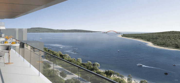 大面积的玻璃幕墙则将水景最大化引入室内,并且添加层次设计,增加了江景生活的细节,让观赏者形成富有层次美感的瞰江体验。