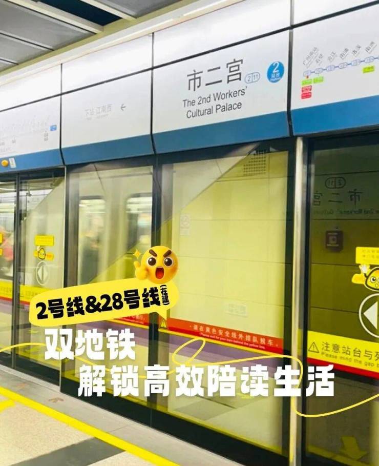 市二宫站2号线 + 佛穗莞28号线(在建)双地铁交汇,1站到越秀,2站达北京路,28号线通车后,广佛莞1小时生活圈,就算跨城上班,也能早点儿回家陪娃写作业!