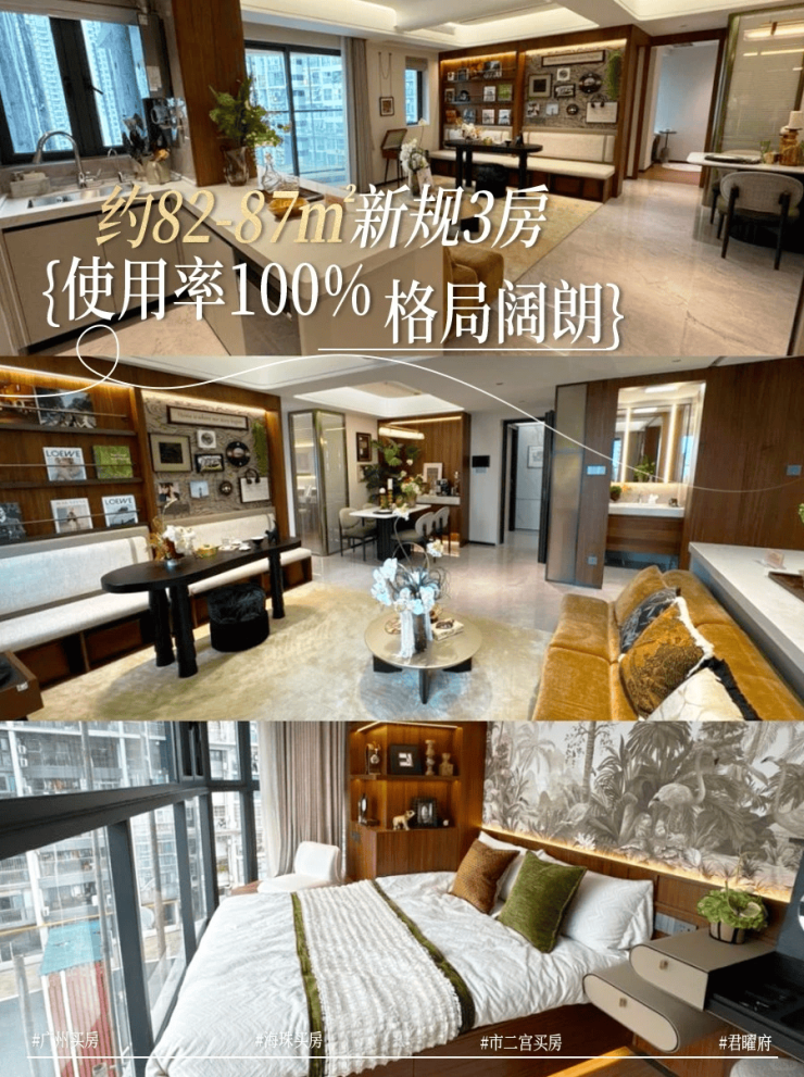 君曜府是封顶实景准现楼,今年买今年住,不耽误娃入学!建面约82-122㎡三至四房,搭配 AI 智能家装,灯光、窗帘可调节,打造舒适学习环境,提升孩子专注力!