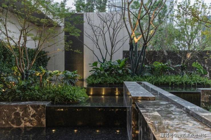 水是一个很重要的元素,我们认为水是灵动的,而且也能够让你放松下来,所以我们以水景与植被为底色,设计打造了可参与的景观互动场景,水景融入了层叠、流转、悬瀑、戏水四重奏;叠瀑、涌泉、跌水、静水、跳泉、流水六种表情。