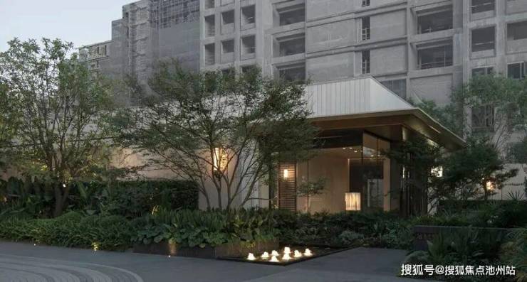 奢雅的宝门廊、酒店式落客和超尺度水景空间的运用,生活功能与设计手法并行,无一不凸显着迎宾式的高贵归家感受,围合的院落完成了从都市到安静的自我空间领域的过渡。