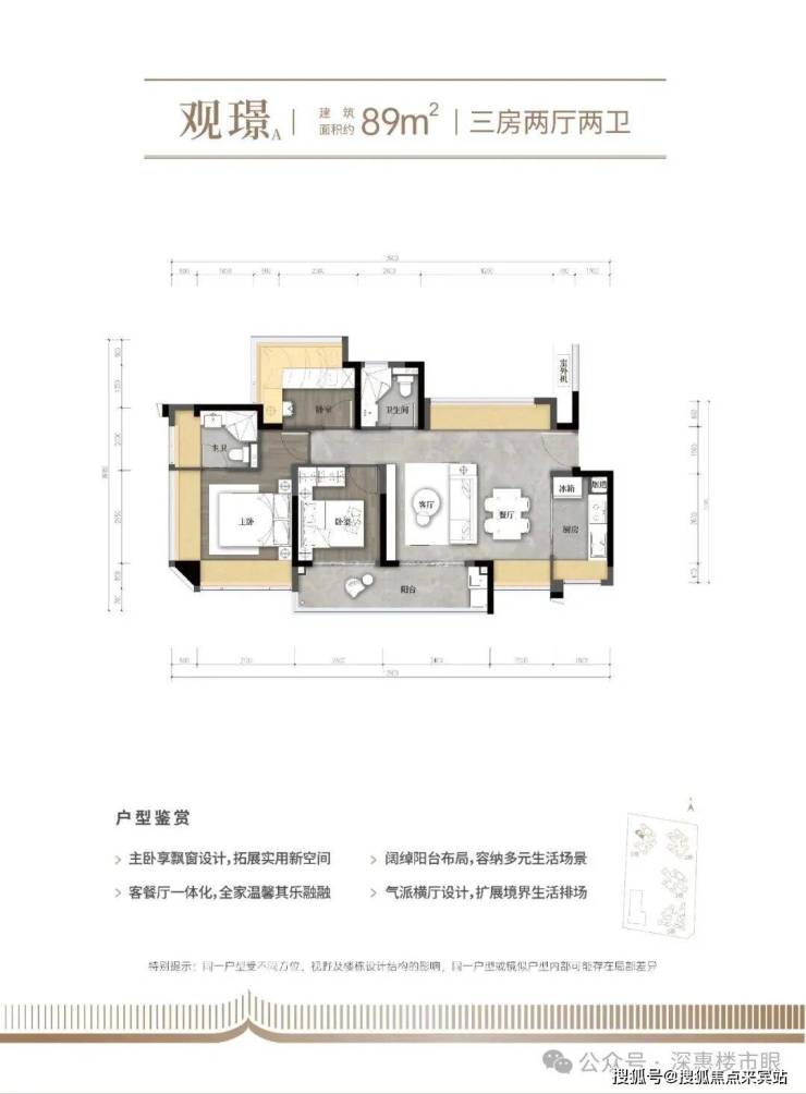 89m²的3房2厅2卫,折后总价354-371万/套,单价4.01-4.22万/m²。仅剩7套。