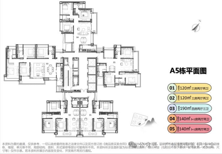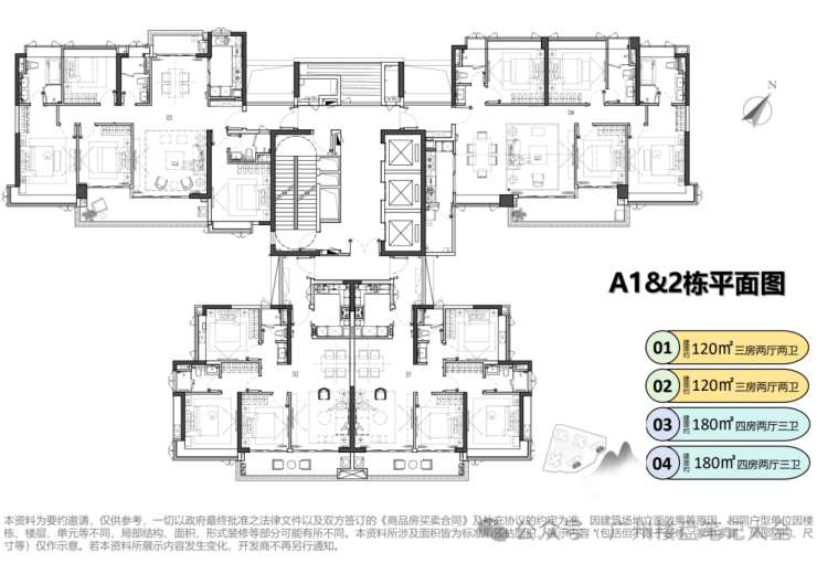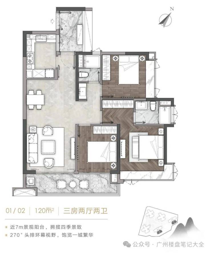 👇户型 | 落座云山正峰头排,户户观景台东南向15°最佳视野,开窗尽览云山林海【A1-01/02】 建筑面积约120㎡三房两厅两卫