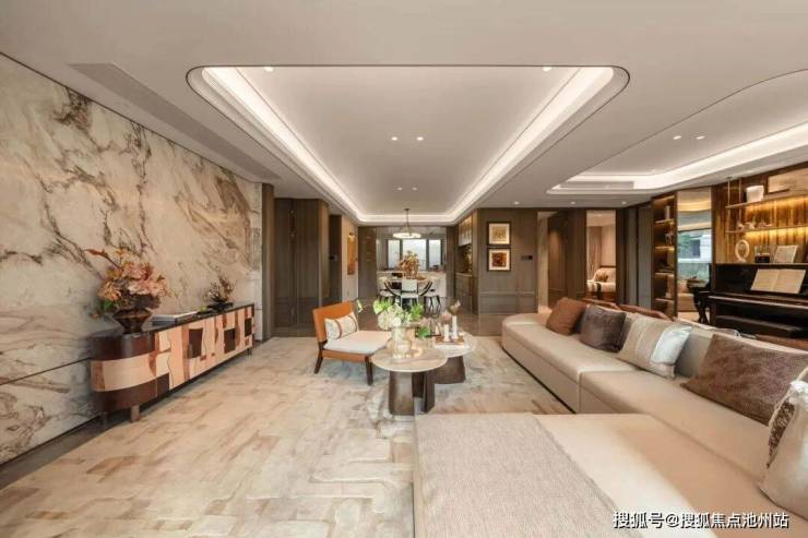 看的见的地方,都被绿城玩出了海量花样,如门头:是杭州此前从未见过的波特曼风格,复杂立体的十字门庭,既有恢弘的气势,也有层次感十足的立体景观。有精致的树阵水院,也有高差贯穿三层的下沉式庭院。