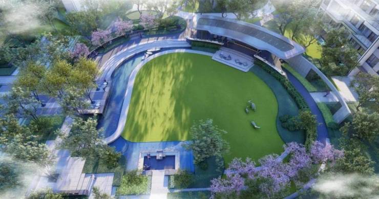项目打造约1.8超低容积率和约35%绿化率,静享舒朗自然;约7000㎡中轴景观,涵盖约3000㎡多功能中央草坪和约200米景观长廊,日常簇拥花间草木,让建筑与绿意和谐生长。