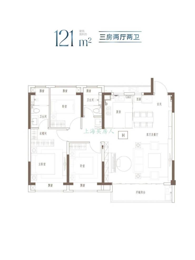 户型总结:3开间朝南,全屋阳光充足;L型厨房转角移门设计,最大化空间视野;四飘窗设计,通透空间享受;动静分区,亲密有度;套房式主卧,容纳私谧生活点滴;