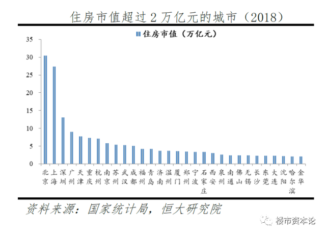 这是2018年的数据。过去两年,主要城市房价普遍上涨,以上海为例,2018年至今,上海房价从5万上涨到5.9万,整体涨幅约为20%左右。加上新建商品房井喷,房地产总市值至少还应上浮10%左右。以此估测,2020年上海房地产总市值约为36万亿。这还是保守估计。