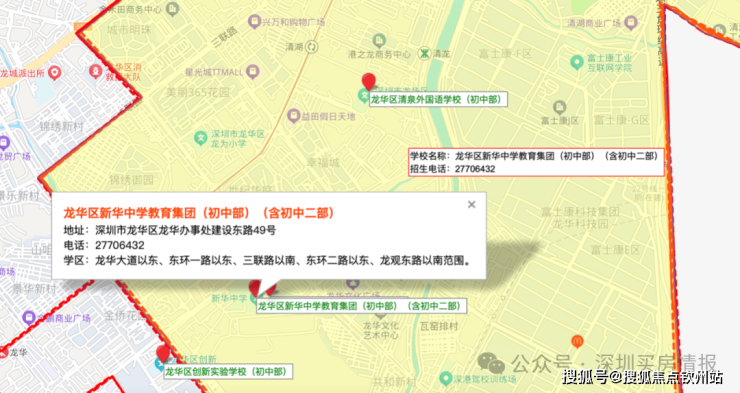 依据2025年龙华区教育局的学区划分方案,小学学区涵盖龙华第二实验学校华美校区及华仁华美校和华育校区;初中学区为龙华区清泉外国语学校初中部、龙华区新华中学教育集团初中二部、龙华区新华中学教育集团松和学校初中部、龙华区教育科学研究院附属外国语学校初中部。