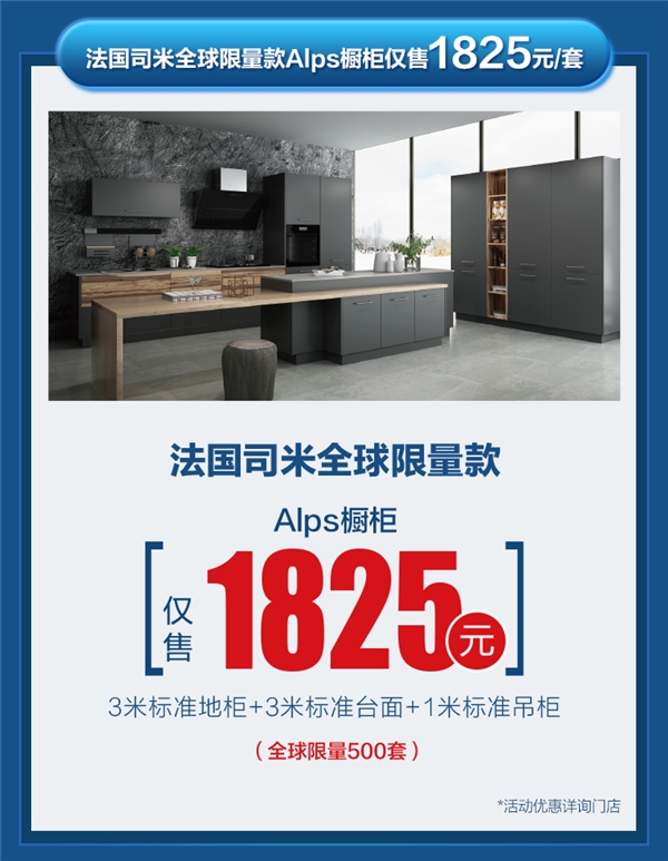 好看的皮囊千篇一律,个性的灵魂万里挑一。韩庚将在4月29日空降发布会现场,法国司米橱柜开启全球限量500套发售,限量款Alps橱柜仅售1825元,3米标准地柜+3米标准台面+1米标准吊柜的整套法式橱柜,助您一站配齐健康舒适的家。
