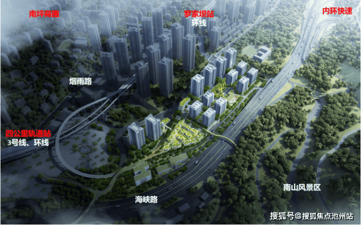 双轨交汇,3号线和环线,项目约250米环线罗家坝站,约600米就是四公里轻轨换乘站,3号线是穿越重庆南北,是重庆交通的大动脉,环线可以达到火车北站和火车西站,串联全城。