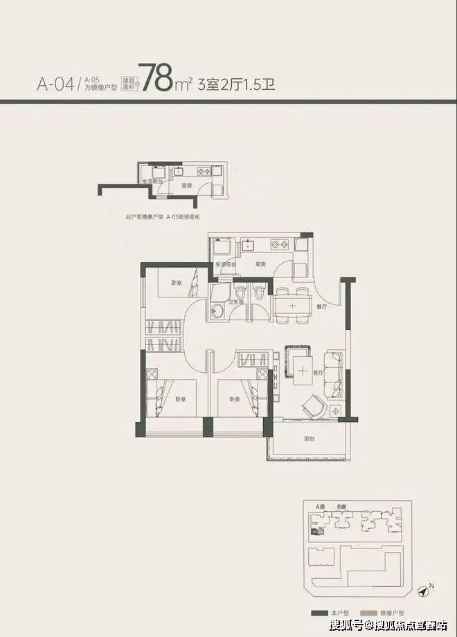 78㎡3房1.5卫单价7.0-7.9万/㎡ 总价540-607万87套