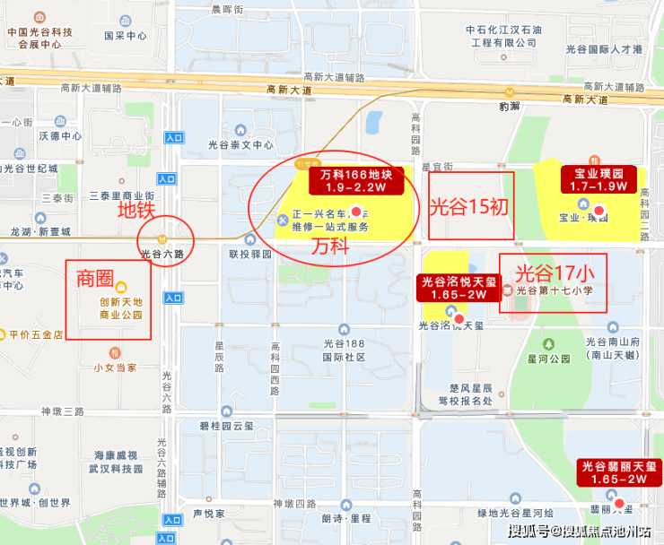 万科璞拾光屿,用了万科的“拾”系列名称,这也代表了该楼盘的定位是:高端住宅——万科璞拾光屿即万科光谷166号地块即P(2024)166号地块位于东湖高新区高新大道以南、神墩一路以北、高科园西路以东、高科园路以西,该P(2024)166 地块,该地块是由湖北科投在去年12月20日拿下,因有商办配建要求,综合拿地价在9000/㎡上下在2025年7月正式官宣由万科中标代建。