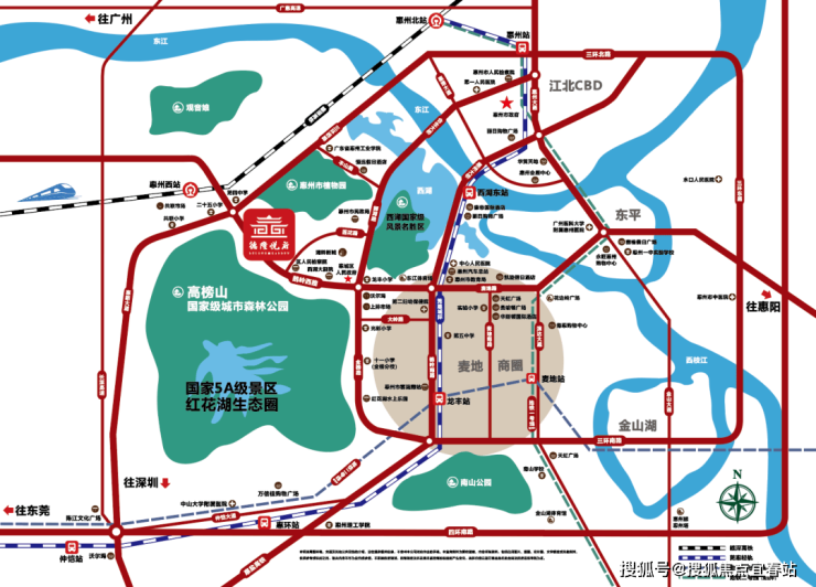市中心的生态区:高榜山脚下、红花湖景区与惠州西湖左右相伴,背靠惠州市植物园。区政府、图书馆、西湖大剧院、文化馆及青少年宫……生态、文化、自然多重资源叠加,生活格调与众不同。