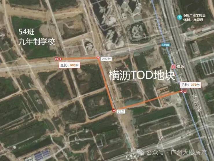 项目距离在建的54班九年制学校,距离就约500米