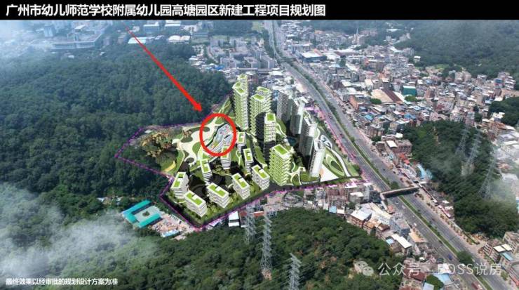 项目旁边是广幼师附幼儿园新园区,从项目的效果图来看,幼儿园和小区距离非常近。