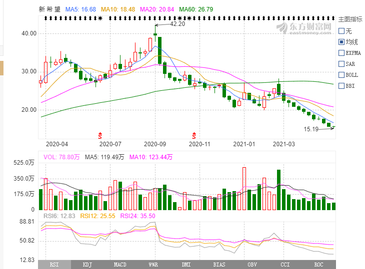 此外,自1月递表至通过聆讯的100天间,母公司在资本市场的表现则是,新希望股价自1月份之后有些许提振,但在3月份依然难掩“下坡路”。