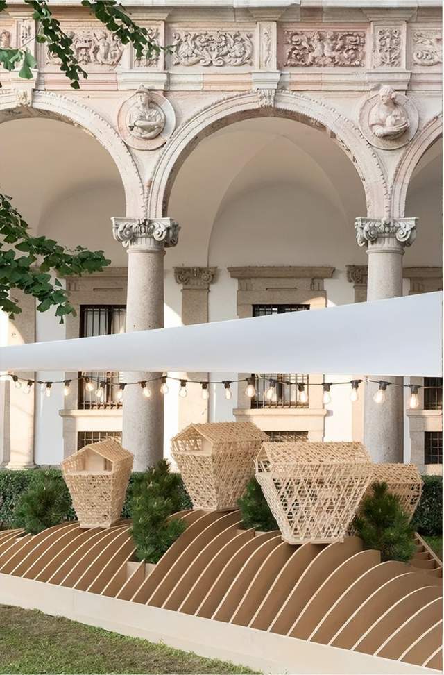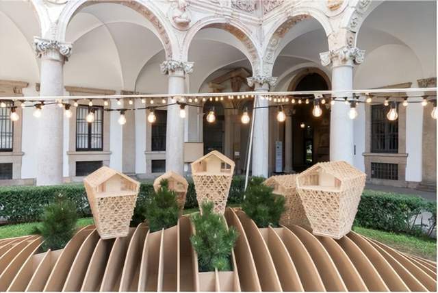 米兰大学庭院的“垂直木屋”,灵感源于当地乡土建筑,以现代的方式对其进行重新构想▲▼