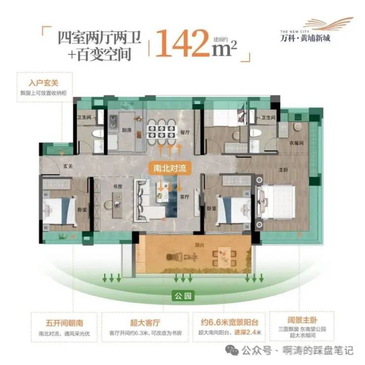 能做4房你敢信吗!经典南北通王者,还可以干多一个空间!! 主卧独立衣帽间,望公园景的稳赚之选!