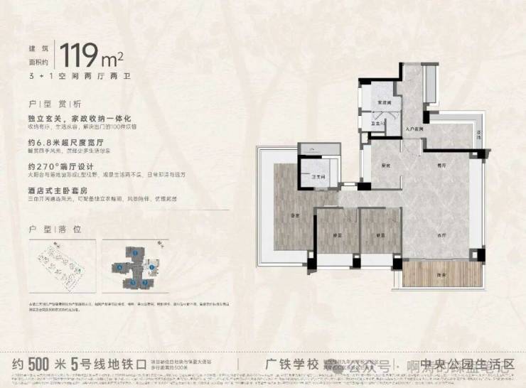 4⃣️建面约119㎡ 3+1空间