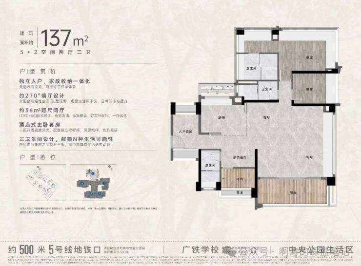 5⃣️建面约137㎡ 3+2空间(天花板!)