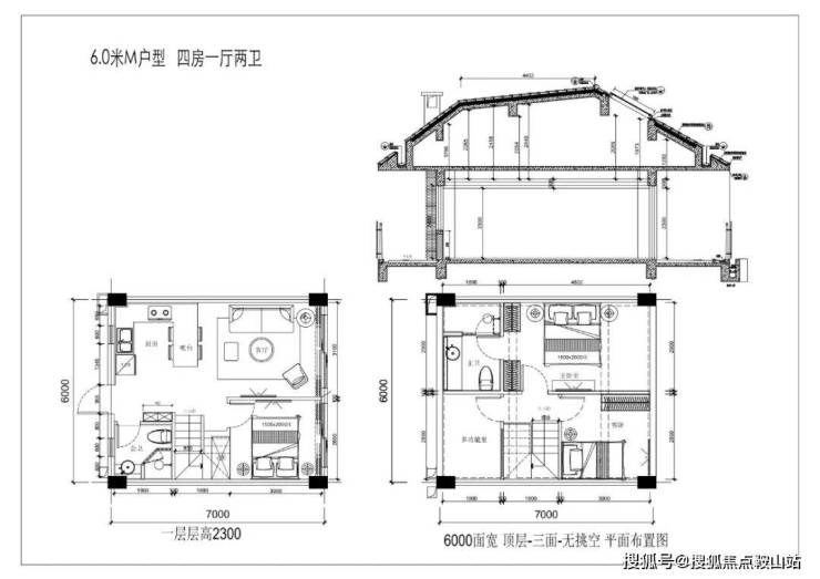建面65和75,四层三折坡,实得99㎡—120㎡,3-4房2卫